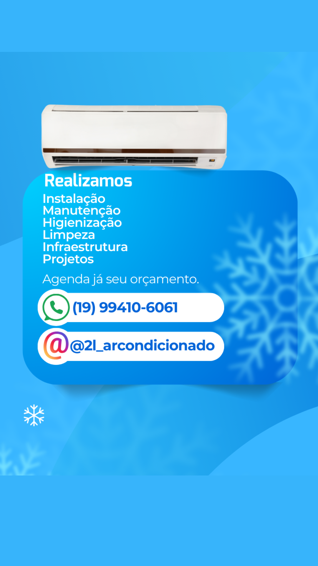 Nós, da 2L Ar-Condicionado, queremos que você tenha uma experiência positiva e agradável com nossos serviços e com seu ar-condicionado. Agradecemos por sua visita e até logo.